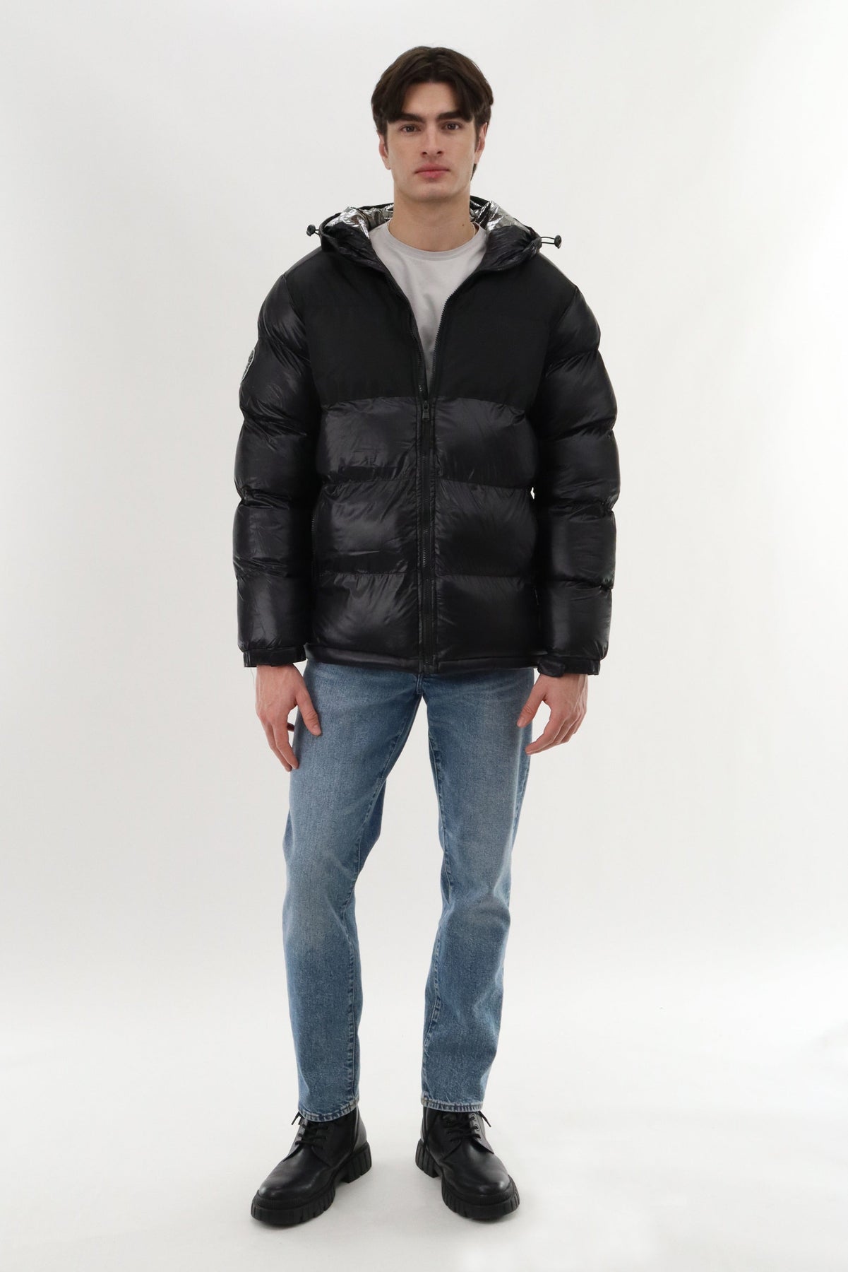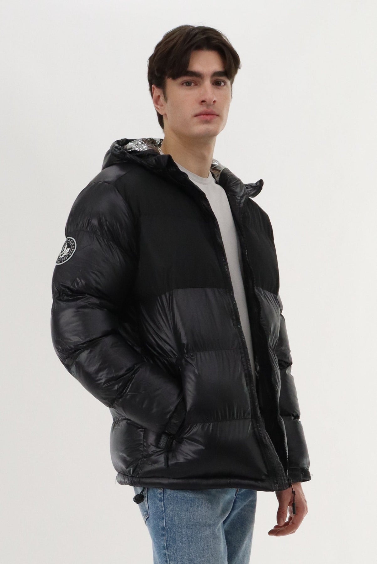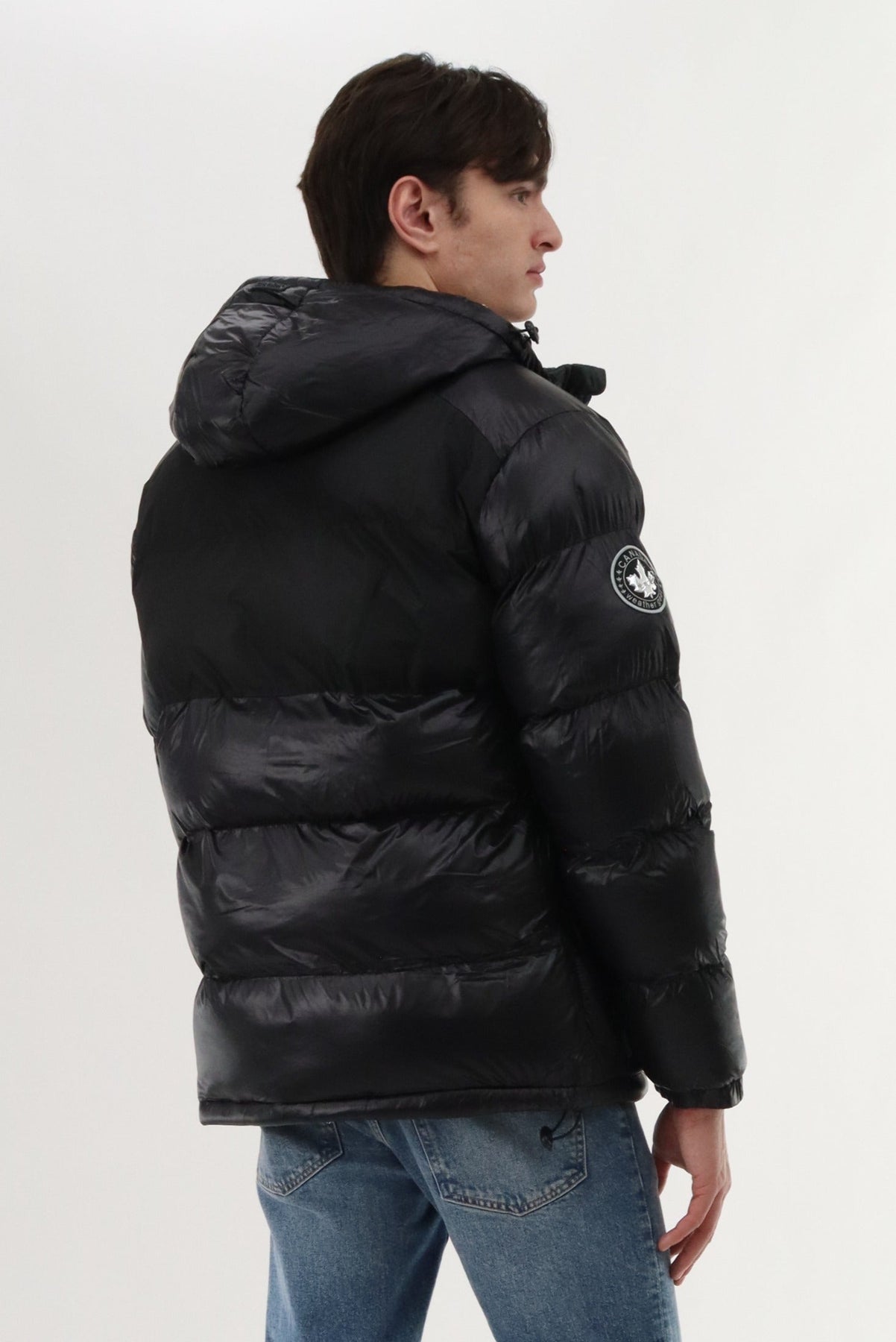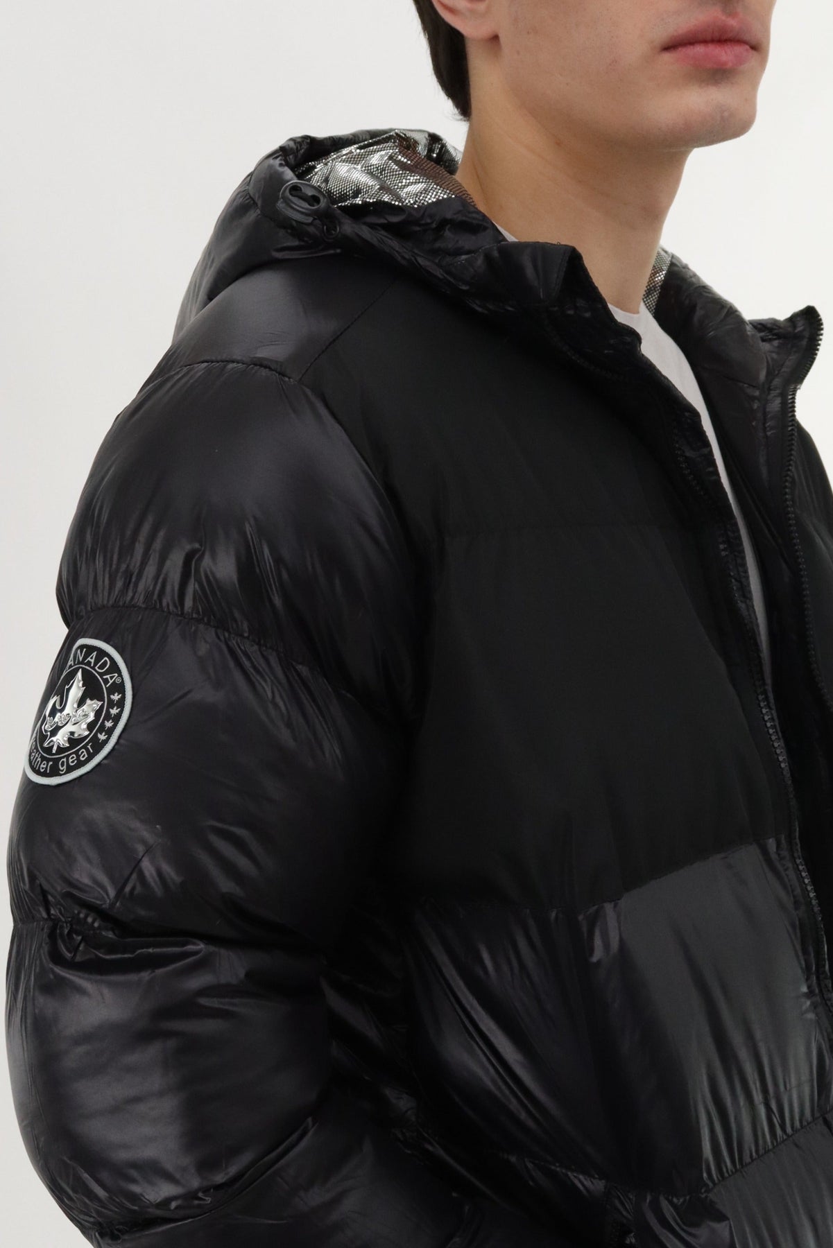 Canada Weather Gear Hooded Shiny Bomber Jacket - Black - Mens Bomber Jackets - Canada Weather Gear