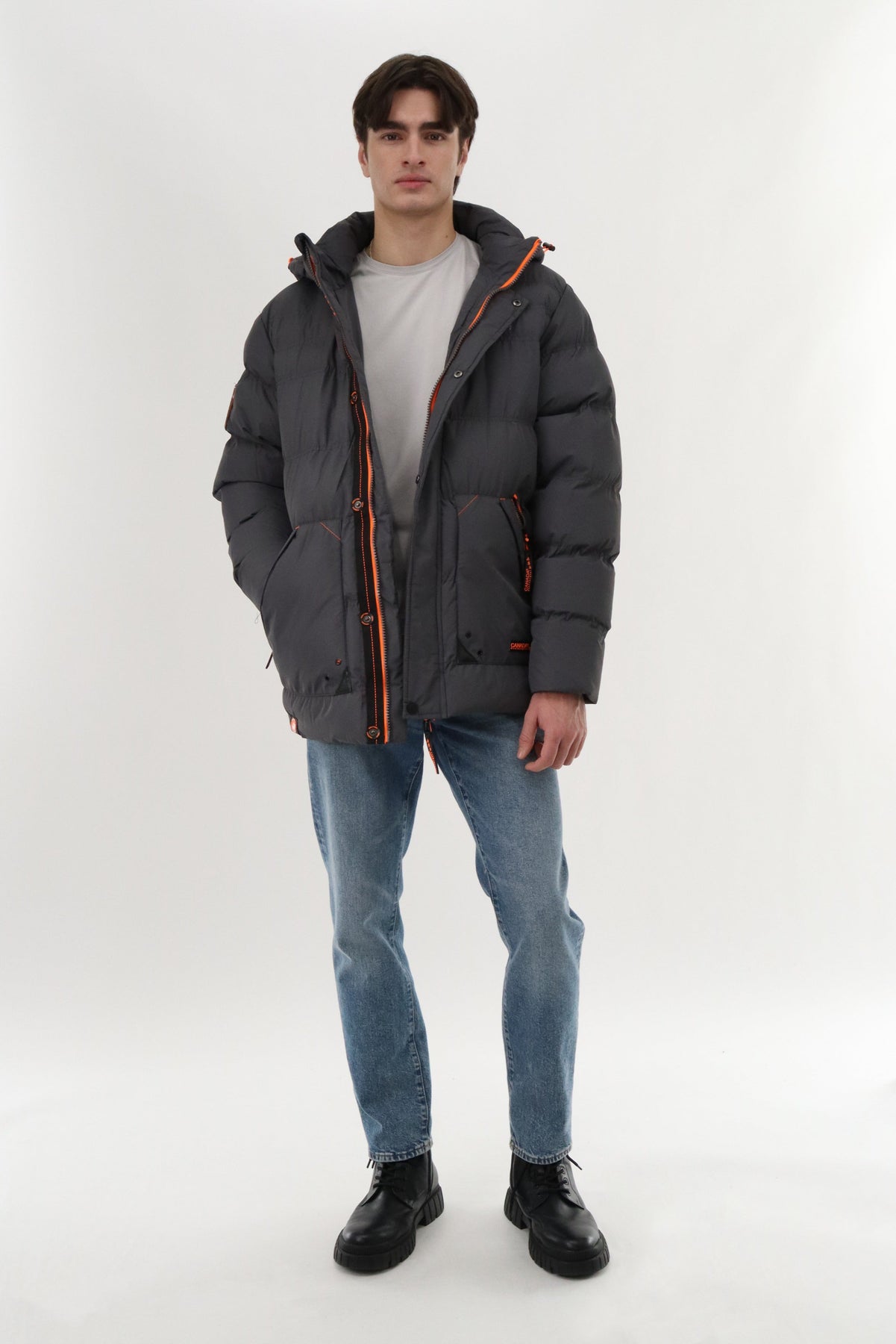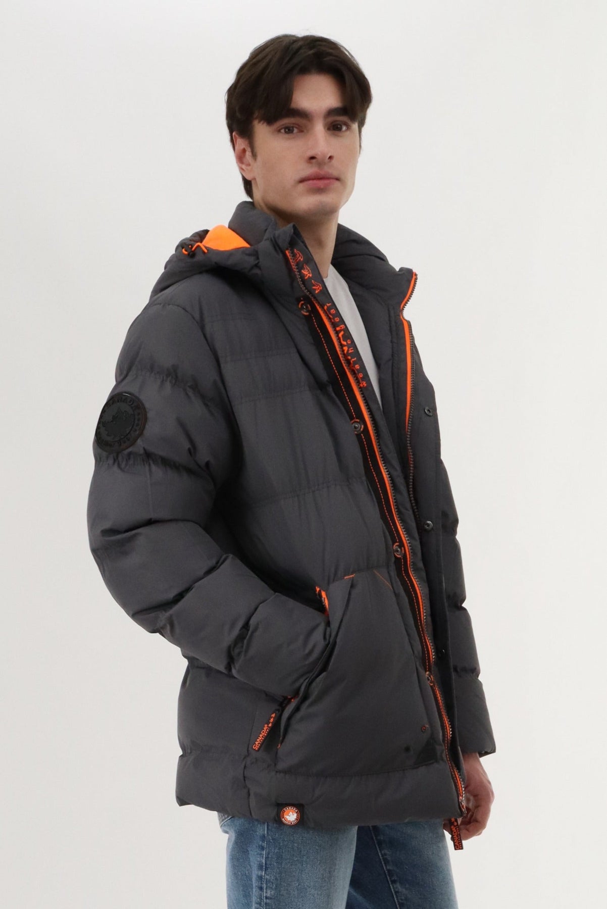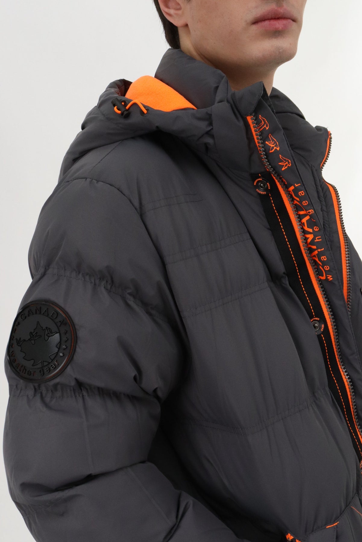 Canada Weather Gear Contrast Zip Puffer Bomber Jacket - Grey - Mens Bomber Jackets - Canada Weather Gear