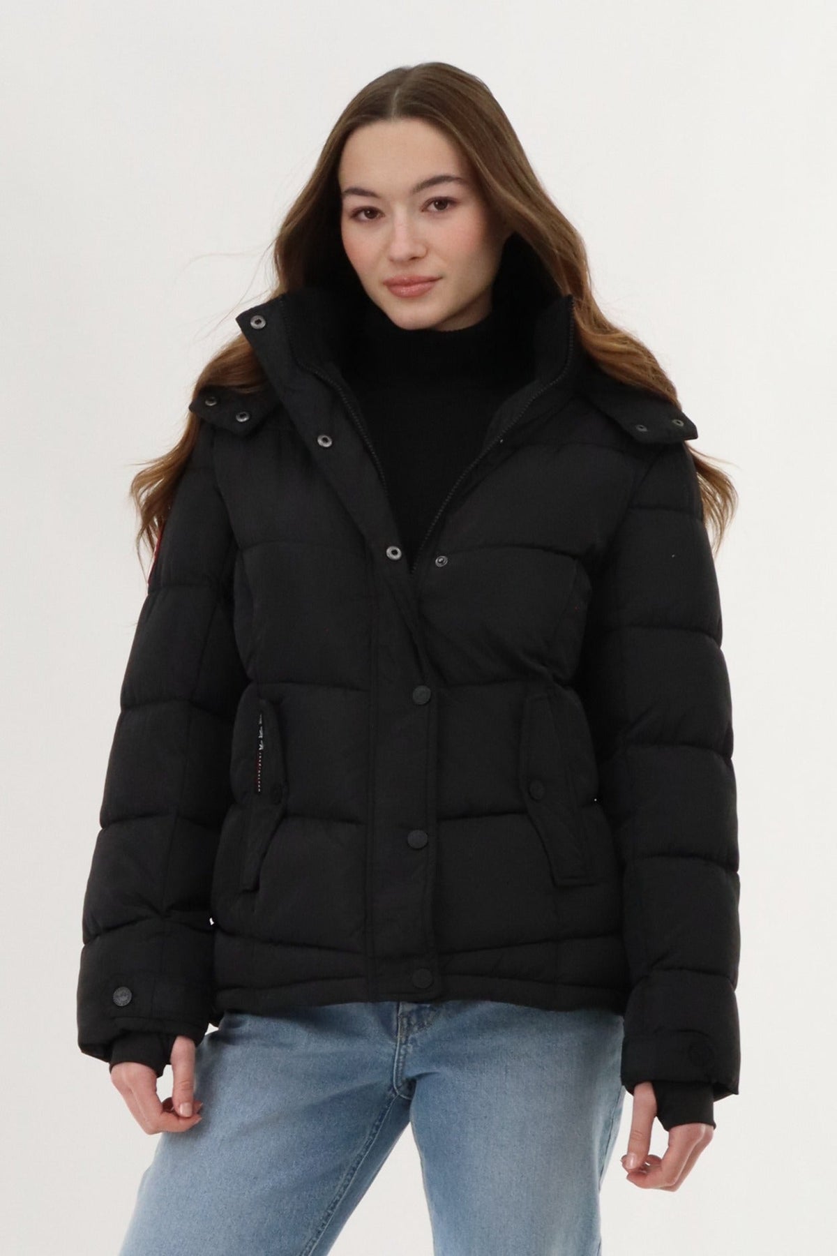A new bomber jacket can elevate your style to the next level, year round, and they are affordable to boot. You can achieve a classic or military inspired look with a black or iconic green bomber jacket. Spring and winter jackets for women can be versatile and help keep you warm while looking cool, if you know how to accessorize! If you are looking to stay warm and look great in the winter, simply add a warm scarf to your wardrobe, and step out into the snow wearing your new bomber. Shop our collection of women's bomber jackets online and in-store.