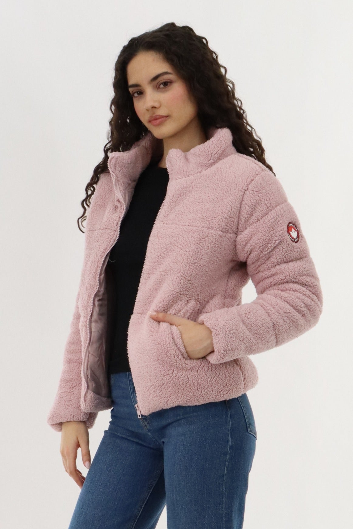 Canada Weather Gear Sherpa Bomber Jacket - Pink - Womens Bomber Jackets - Canada Weather Gear
