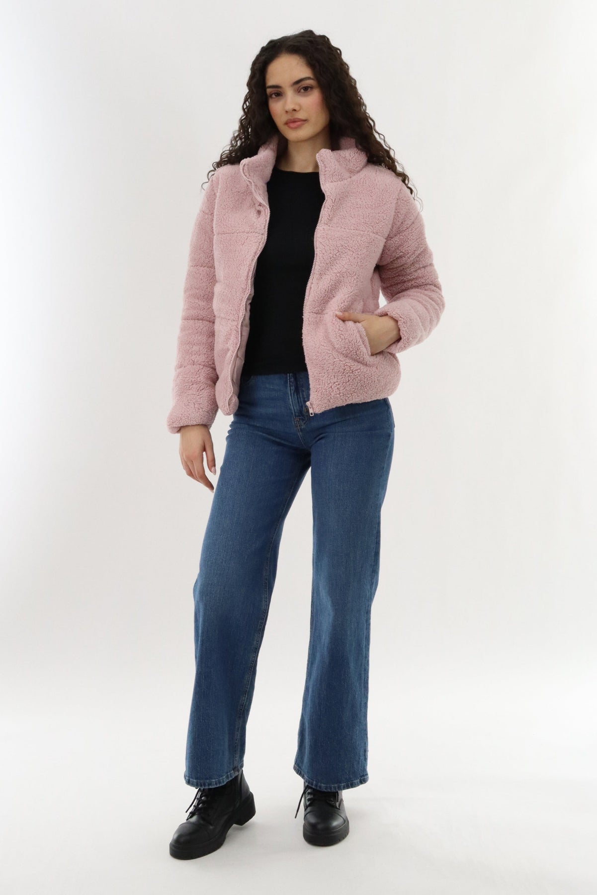 Canada Weather Gear Sherpa Bomber Jacket - Pink