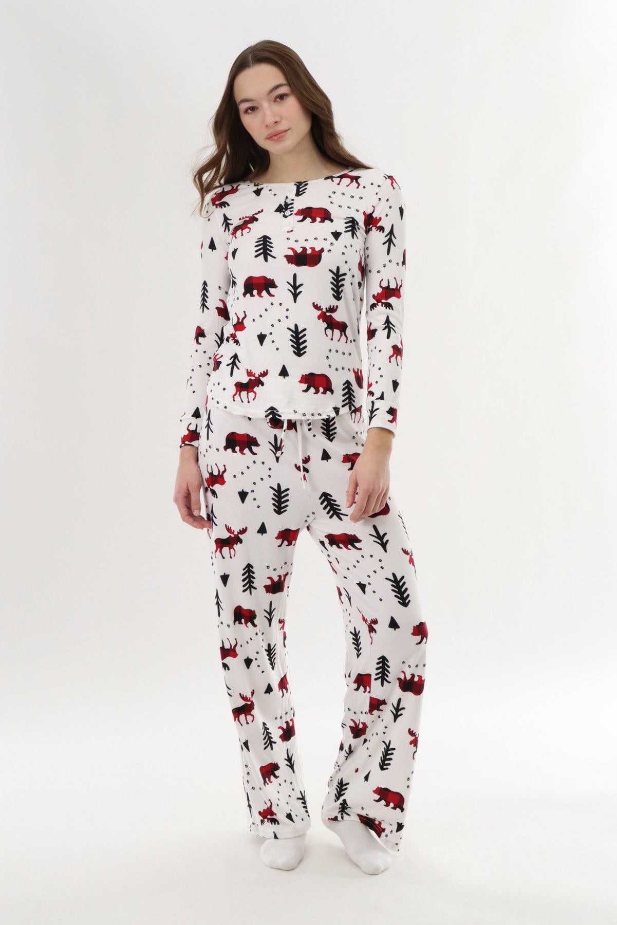 Canada Weather Gear Wide Leg Festive Pajama Pants - White - Womens Pajamas - Canada Weather Gear