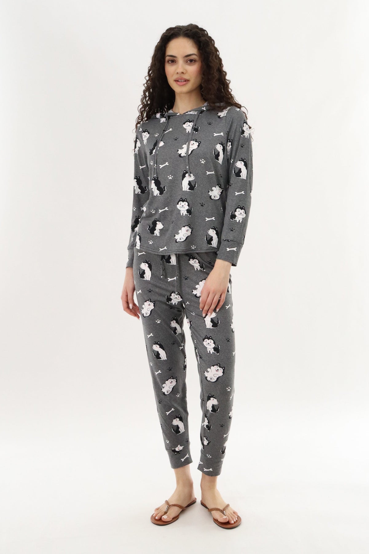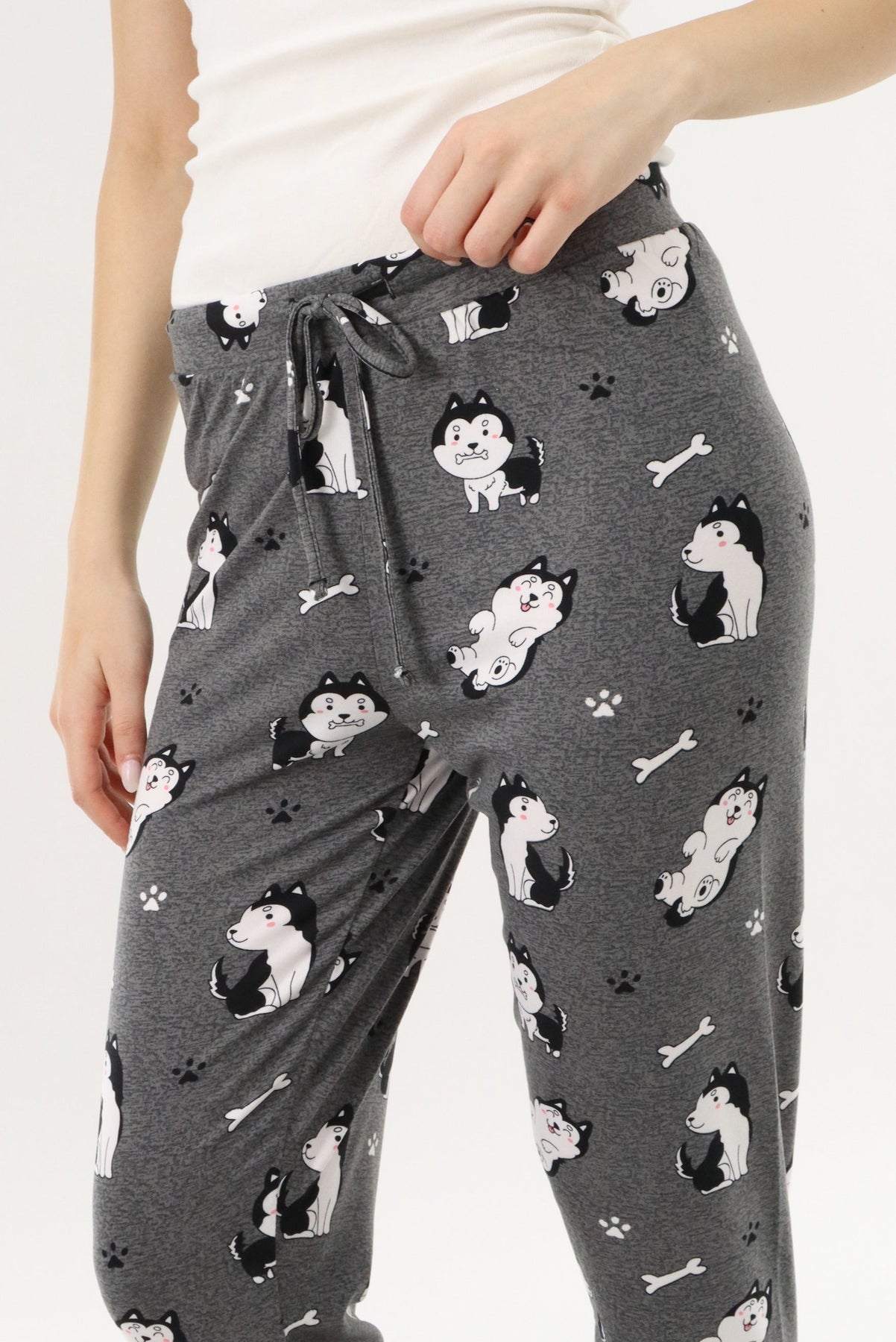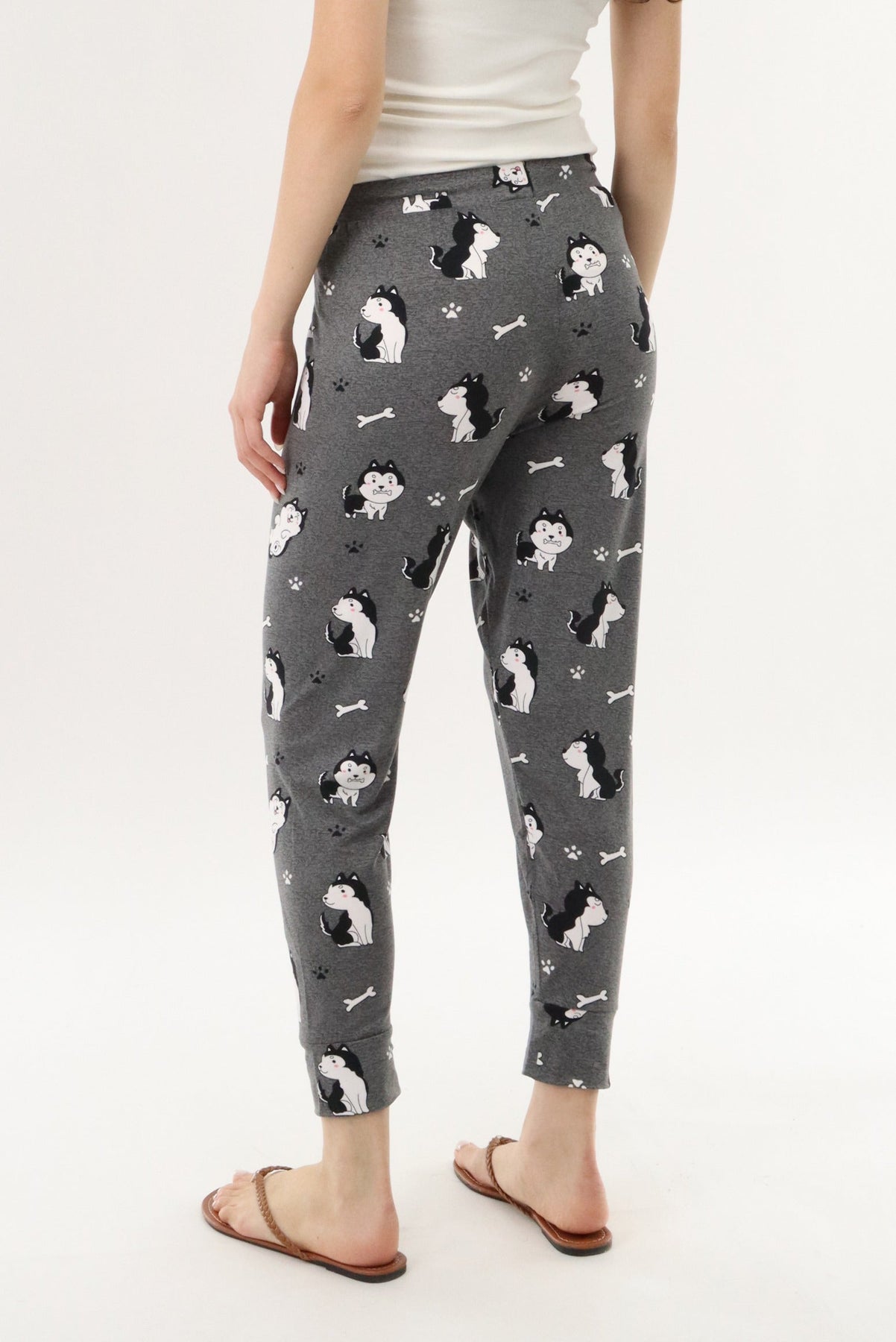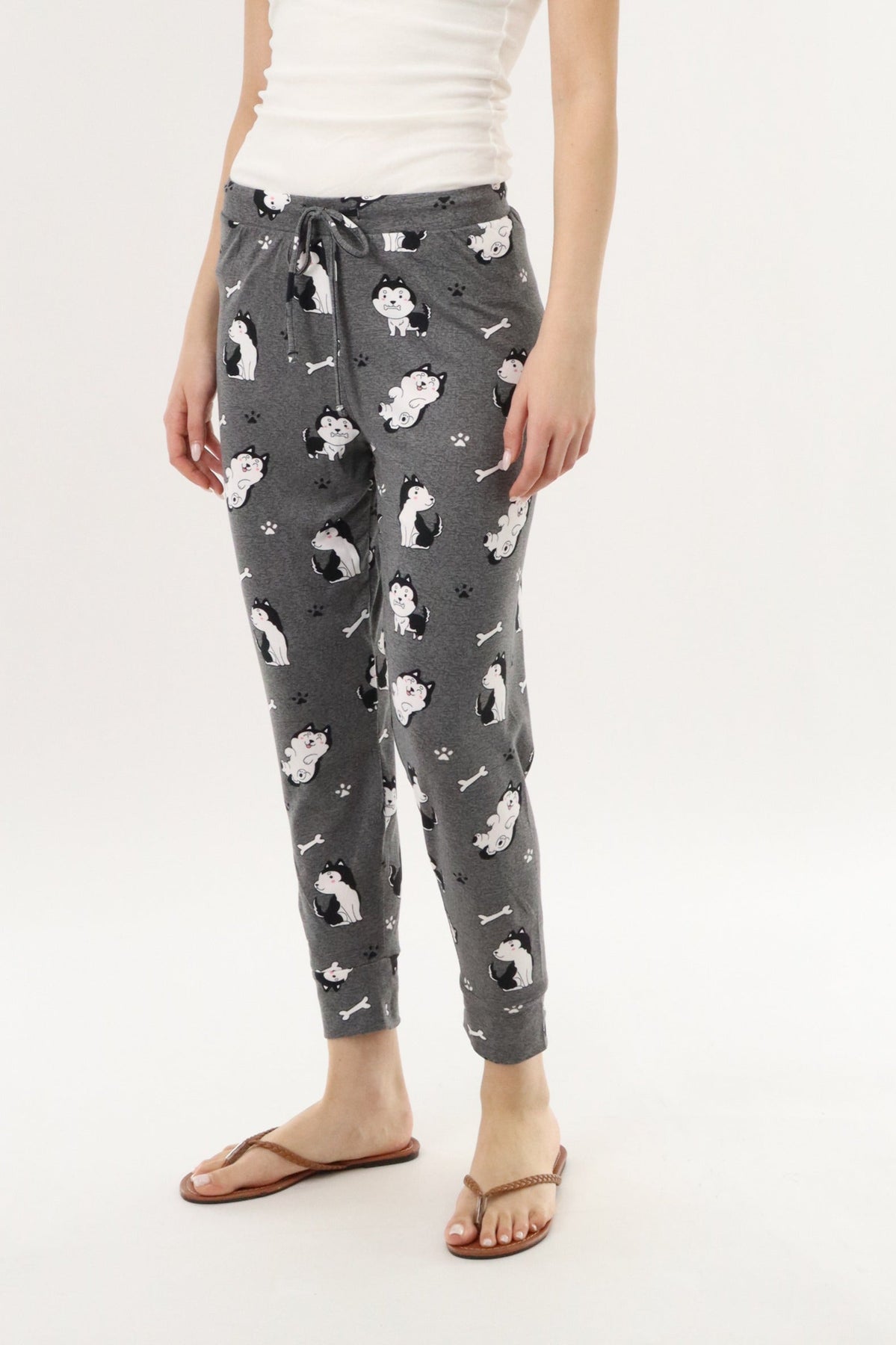 Canada Weather Gear Puppy Print Jogger Pajama Pants - Grey - Womens Pajamas - Canada Weather Gear
