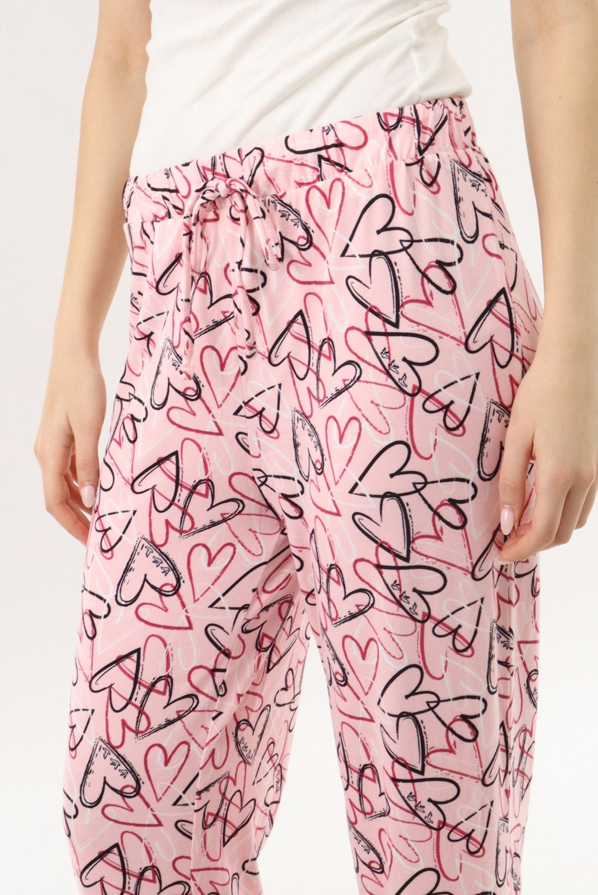 Canada Weather Gear Heart Print Long Pajama Pants - Magenta