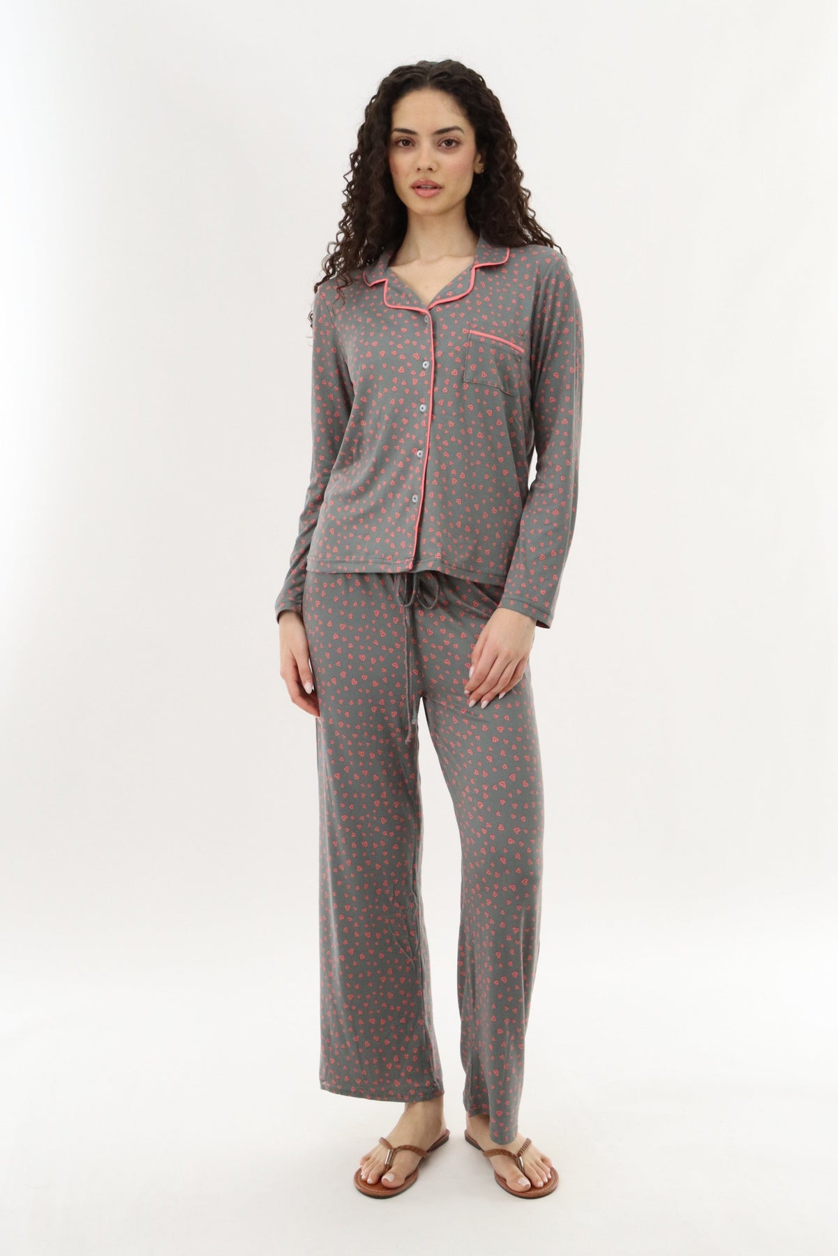 Canada Weather Gear Heart Print Long Pajama Pants - Grey - Womens Pajamas - Canada Weather Gear