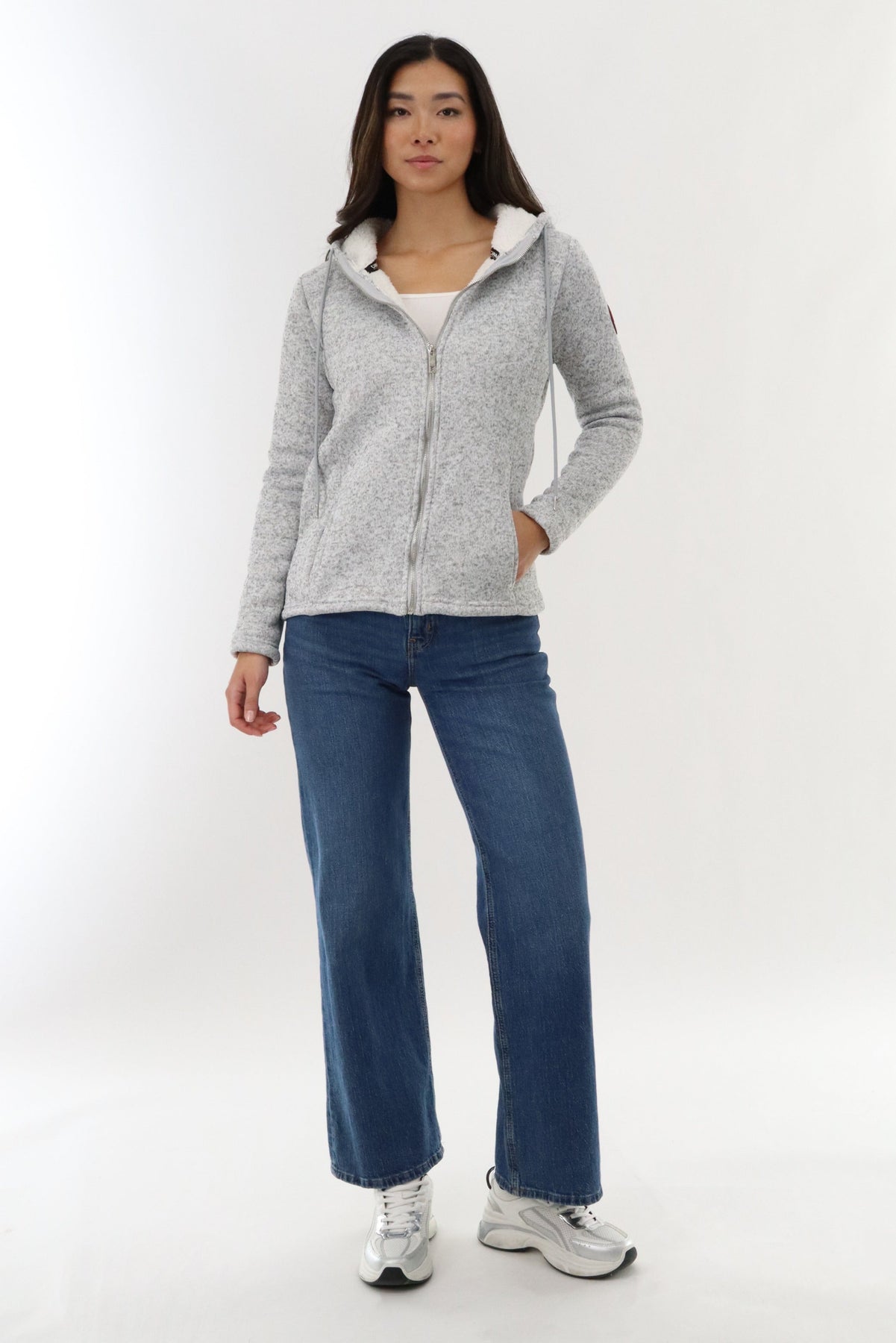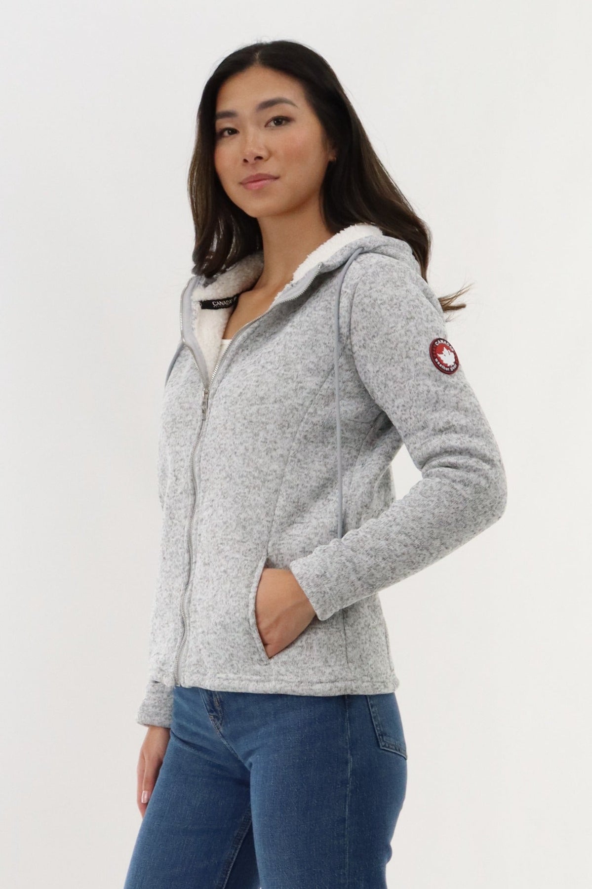 Canada Weather Gear Sherpa Lined Fleece Zip Up Hoodie - Grey - Womens Hoodies & Sweatshirts - Canada Weather Gear