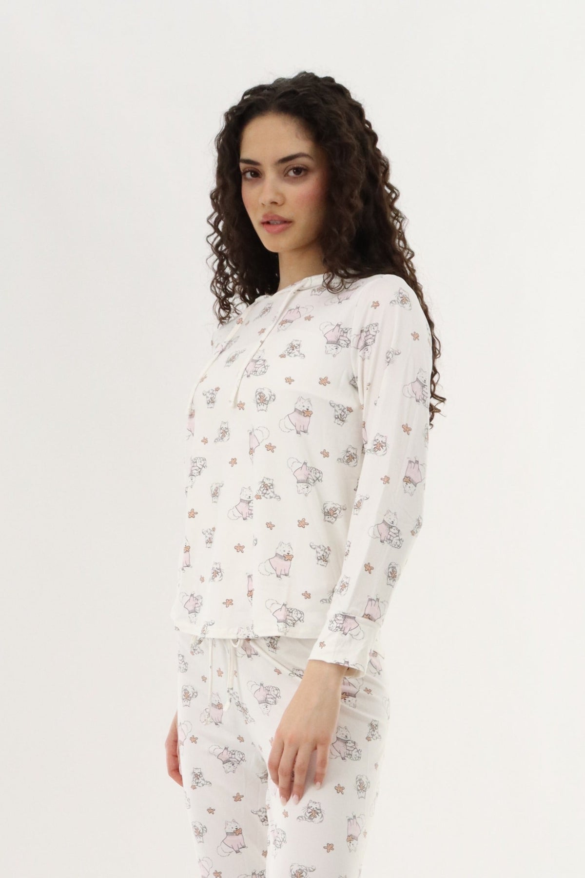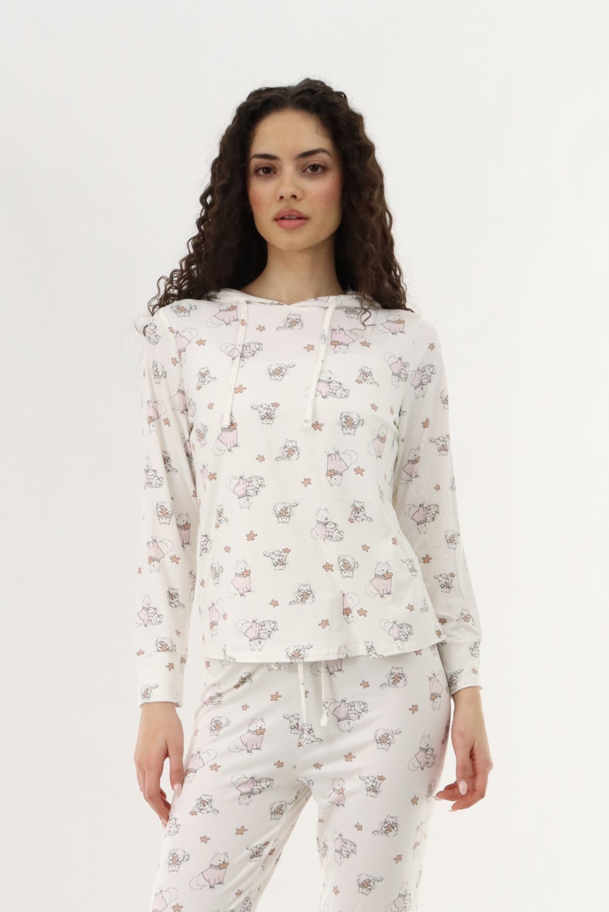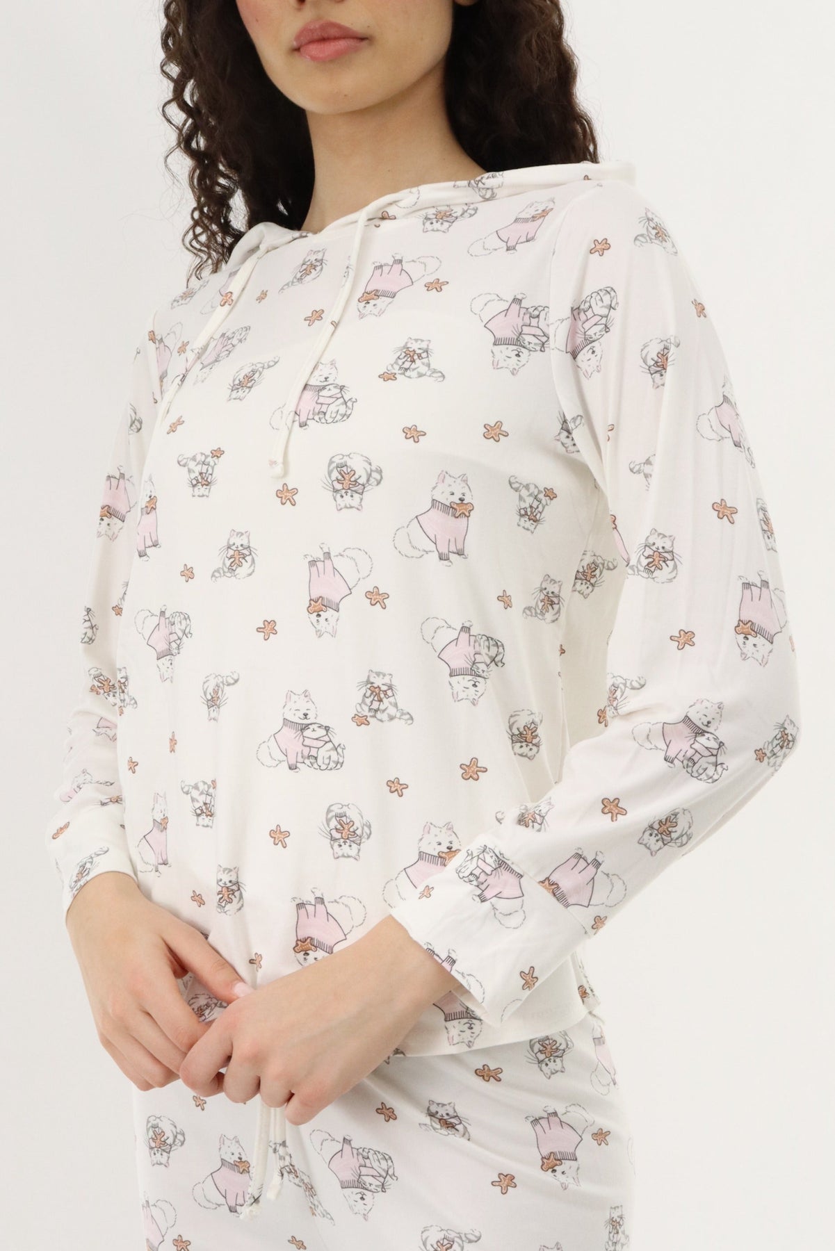 Canada Weather Gear Printed Hooded Pajama Top - White - Womens Pajamas - Canada Weather Gear