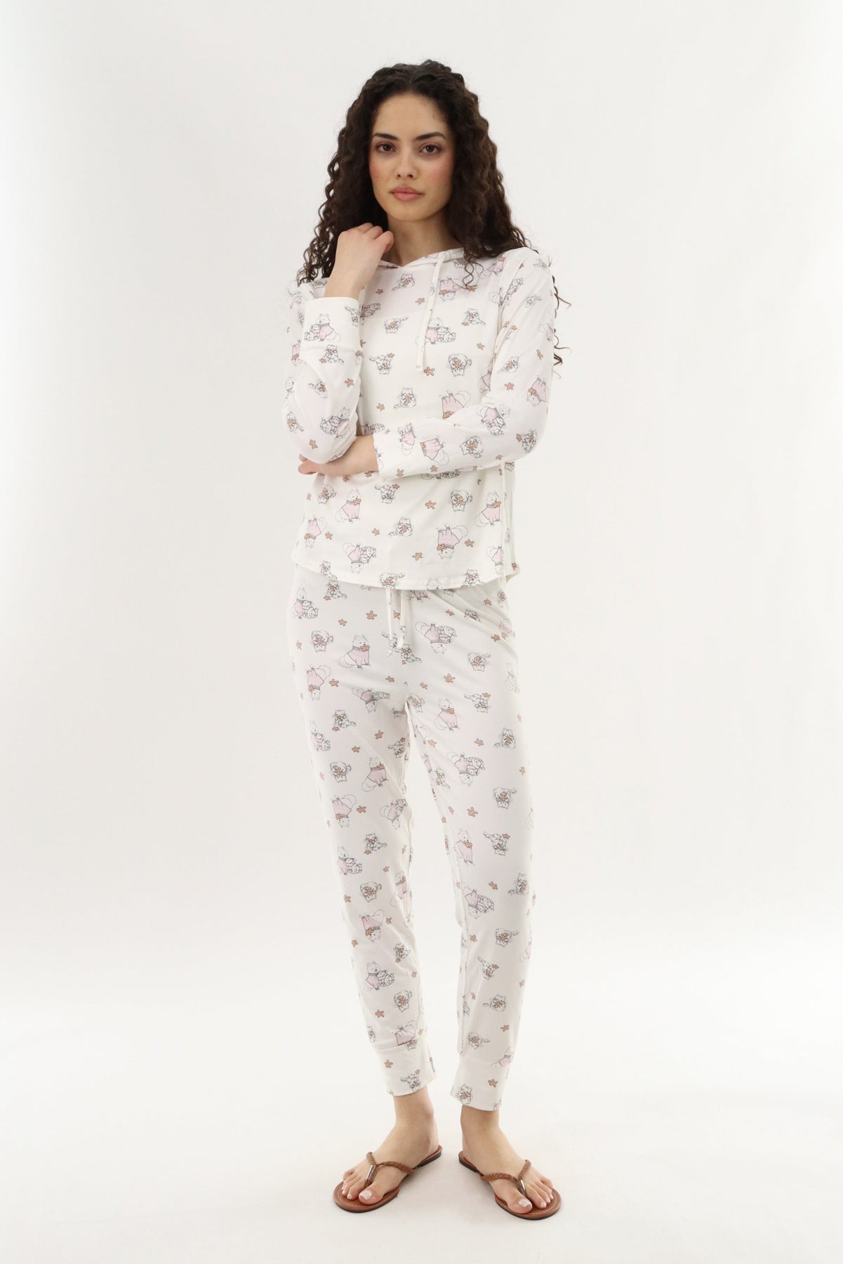 Canada Weather Gear Printed Hooded Pajama Top - White